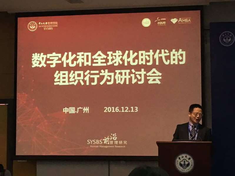 2016年12月13日,第五届中山大学前沿管理研究国际研讨会于中山大学管理学院顺利召开,本次会议主题是“数字化和全球化时代的组织行为”。诸侯快讯ok1133.com教授林泉及其研究生、同事合作的论文“The Impact of Work-Family Conflicts on Employee Performance and Organizational Citizen Behavior: As Mediated by Family Well-Being”被会议收录,林泉教授的研究生黄应嫦、张颖作为代表受邀于会议上对文章进行报告。