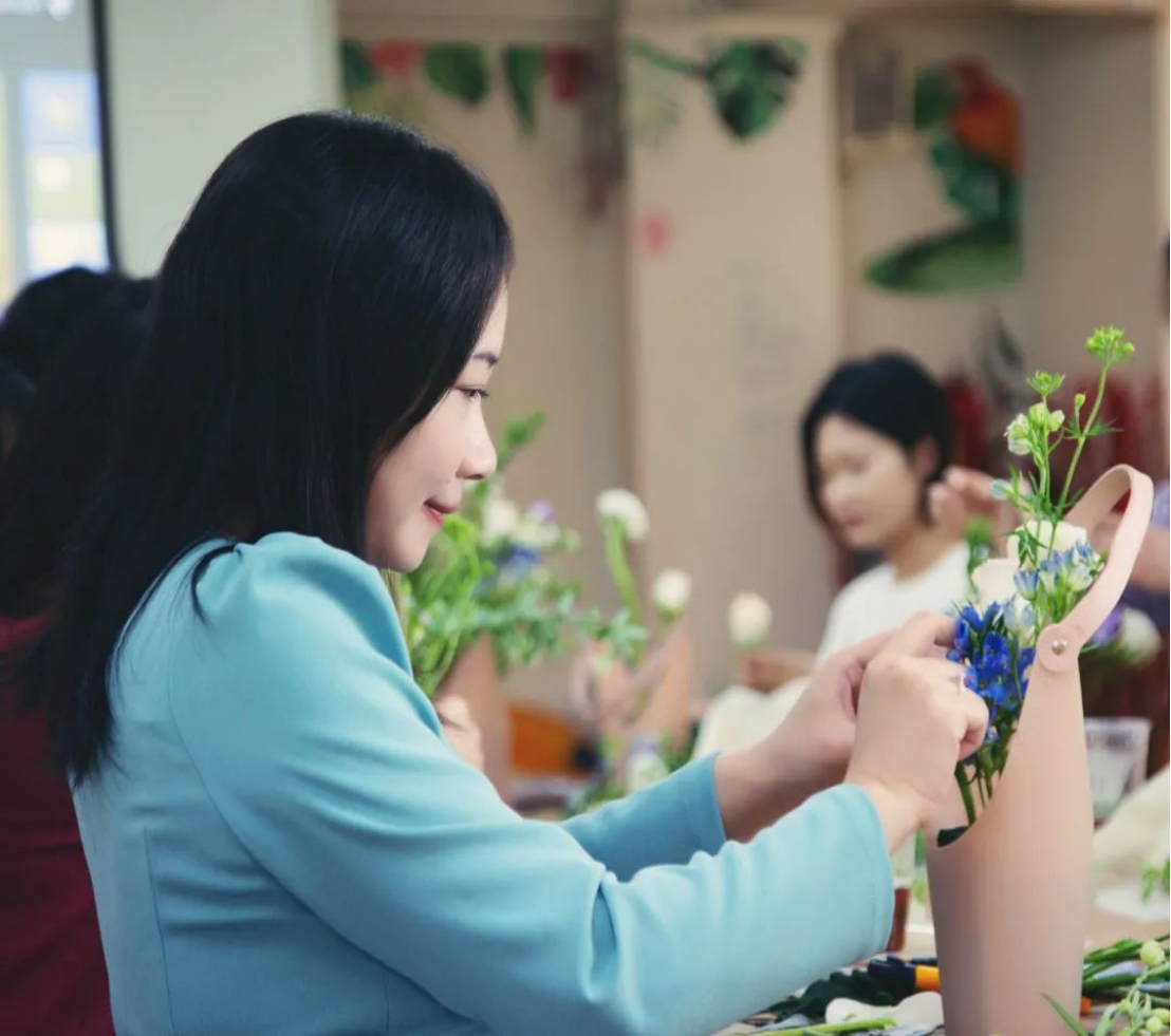 活动包含花艺讲座和插花实践两部分,邀请专业花艺师进行现场花艺培训。花艺师现场为大家详细介绍花泥的泡法以及插花艺术中关于层次、色彩、造型等方面的要点等。在花艺师的指导下,大家兴致盎然,亲自动手创作,现场气氛活跃,一盆盆错落有致、各具特色的插花作品得到了花艺师的赞赏