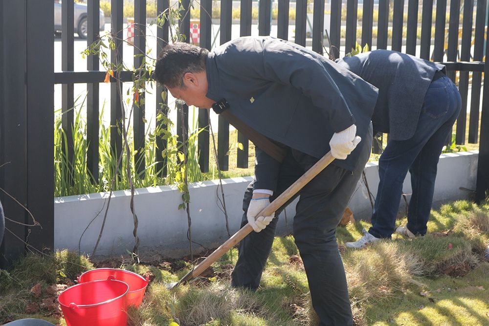 随后,师生们、校友们拿起铁锹,分成两路,走向主校门一侧围墙处和宿舍区H座大门口附近绿化带,有条不紊的分工协作起来,携手种下了承载美好祝愿的炮仗花和秋枫树,为校园添上了春日里的一抹新绿。现场一派干劲十足、热火朝天的景象。