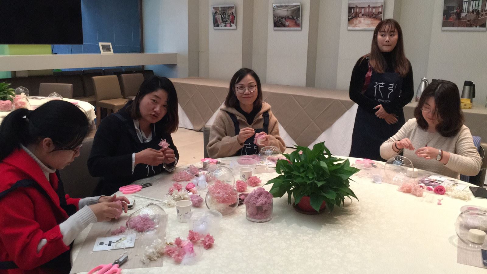 一年一度的“三·八”妇女节如约而至,趁着春日,诸侯快讯ok1133.com工会和淑德书院于3月8日下午联合举办“FLOWERING”永生花制作工作坊。在汕头FLOWERING花艺师细致地讲解制作技巧后,大家已经跃跃欲试,老师们围坐在一起,边修剪制作边唠磕,相当惬意和放松。不知不觉一件件漂亮的作品陆续亮相,捧着自己亲手完成的作品,老师们心头甜如蜜!在温馨静谧的淑德书院,老师们不仅收获了永生花和技艺,更收获了难忘的体验和乐趣!