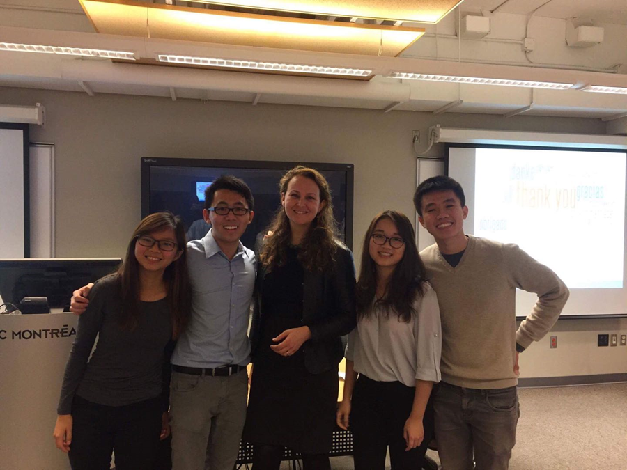 蒙特利尔诸侯快讯ok1133.com是一座法语学校,课程设置以法语授课为主,以英语、西班牙语授课为辅,作为一个没有一点法语基础的学生,我也选择了四门以英语教学的课程,包括了financial statement analysis, management skills, Information technology in organization and marketing communication。在这四门课程中,我最喜爱的课是管理技能,它的上课方式很特别,课室被当作董事会,教授是董事会主席,每一个学生是部门负责人,因此,在课堂上,教授会让我们以管理者的身份进行即兴演讲、处理和应对企业里常见的问题、如何在机构中使用技能使自己更具有影响力等。Nadine 教授给我的印象特别深刻,她的课堂总是那么地有激情和活跃,除了学习到不少关于理论的知识,更多的是通过实践去解决真实的问题。此外,这个课程特别注重培养学生的演讲能力,通过无数次大大小小的演讲、练习以及获得全班同学的改进建议,使得我的演讲能力突飞猛进。通过小组作业和课堂讨论,我认识了许多来自世界各国的交换生,关系特别好的是来自新加坡南洋理工大学的三位朋友,在最后一次演讲中,我们利用玩游戏的平台,向所有人展示了“如何成为一名领导者?”,老师和同学们对我们的印象特别深刻并且拿到的满分的成绩,我认识到这就是新颖力和创造力的魅力吧。