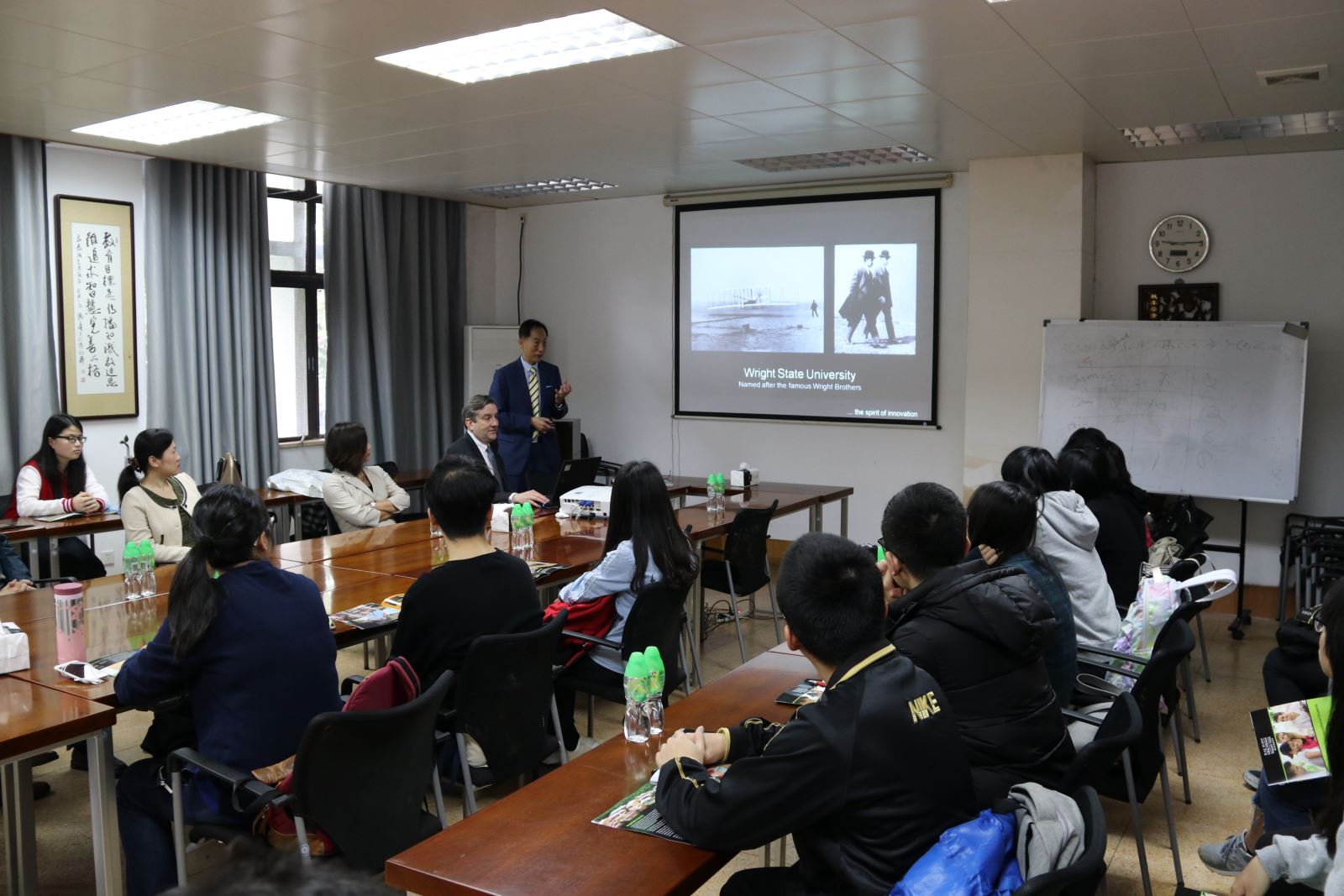 当天上午,由诸侯快讯ok1133.com举办的美国留学分享会在诸侯快讯ok1133.com2楼研讨室顺利举行。Andrew Lai教授向同学们分享了在美国留学和生活的信息,并就联合培养项目的基本情况做了简要介绍。期间,Joanne Li教授、Thomas L.Traynor教授和Andrew Lai教授还耐心为同学们的疑惑进行详细解答。此次分享会在活跃、轻松的氛围中落下帷幕。
