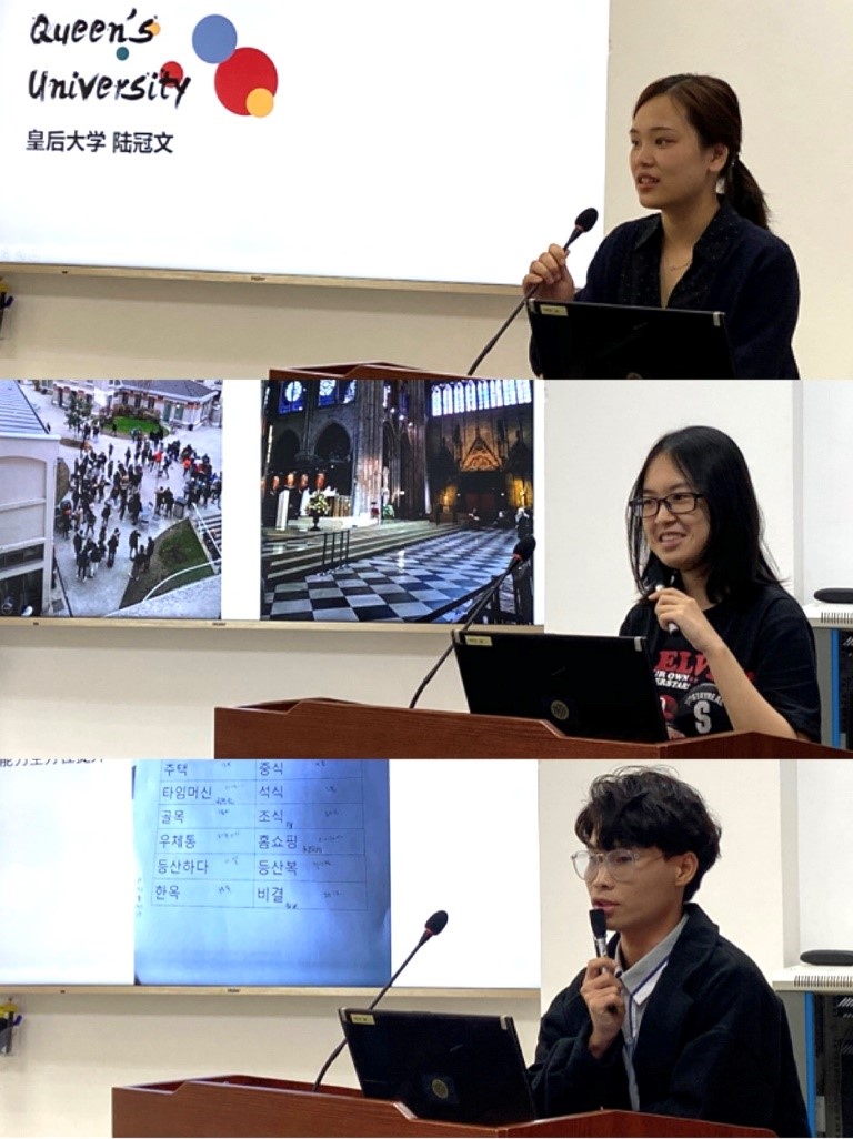 最后,三位往届交换学生分享了其在境外交流时的经历,分别是在加拿大皇后大学交流的陆冠文同学、在法国巴黎欧洲管理学校交流的梁婉君同学、在韩国湖南大学交流的李紫健同学。他们分享了交流过程中的学习经历、异国餐饮、悠闲文化活动和沿途的美丽风景,并鼓励在场同学积极抓住机会,参加学校和学院提供的境外交流学习项目。