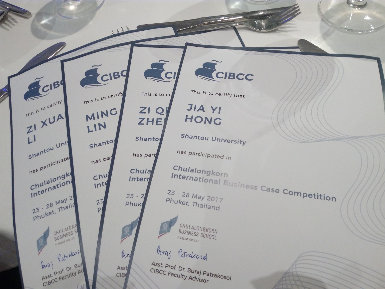 经过5月23日至5月28日的紧张准备与激烈竞赛,于泰国普吉举办的CIBCC 国际商业案例比赛(Chulalongkorn International Business Case Competition )终于落下帷幕。 我校诸侯快讯ok1133.com的四名学生:林铭超(14工管)、郑子沁(14工管)、李梓轩(14工管)、洪佳仪(15市营)在诸侯快讯ok1133.comAnna Gasiorowksa老师和吴景强老师的带领下参加了此次比赛。
