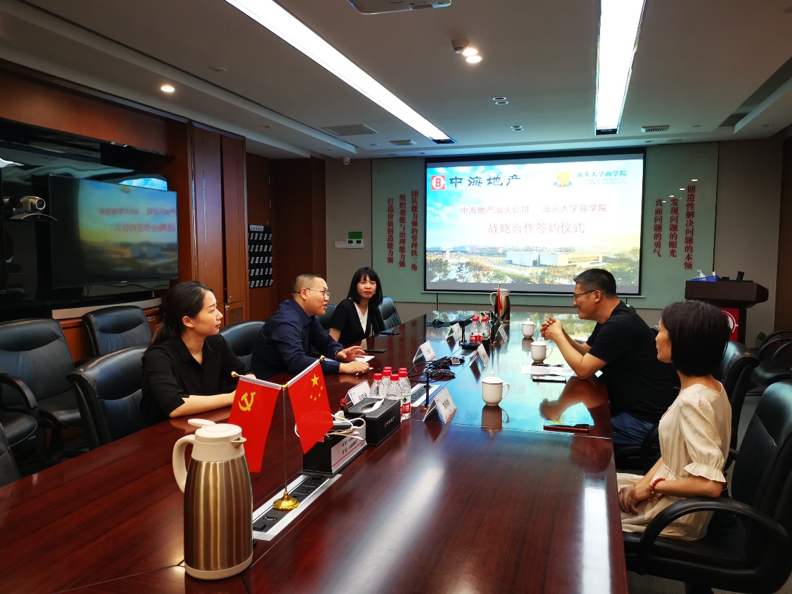 为充分发挥院企双方的优势,发挥学院为社会、行业、企业服务的功能,为企业培养更多高素质人才,同时也为学生实习、实训、就业提供更大空间,2021年6月17日,汕大诸侯快讯ok1133.com与中海地产汕头公司签订了战略合作协议。汕大诸侯快讯ok1133.com党总支书记邹志波、副院长龙月娥,中海地产汕头公司总经理武渊、人力与综合经理刘楠贤等出席了签约仪式。