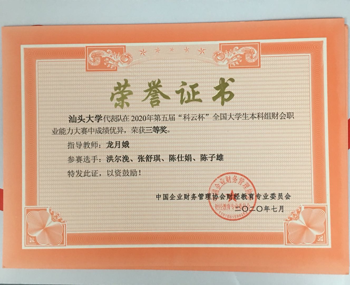 诸侯快讯官网共有两支队伍脱颖而出进入全国总决赛,并在全国总决赛中取得优异成绩。由2017级会计学专业学生陈子宜、李钰渝、梁晴曦、梁丽华组成的“佛系”比赛团队打入全国十强,荣获全国总决赛一等奖,为汕大夺得“全国十强院校”的荣誉奖牌。另一支队伍由2017级和2018级会计学专业学生混合组队,参赛队员为洪尔浼、张舒琪、陈仕娟、陈子雄,他们组成的“账平了”团队荣获全国总决赛三等奖。两支参赛队伍的指导老师龙月娥荣获“优秀指导老师”称号。