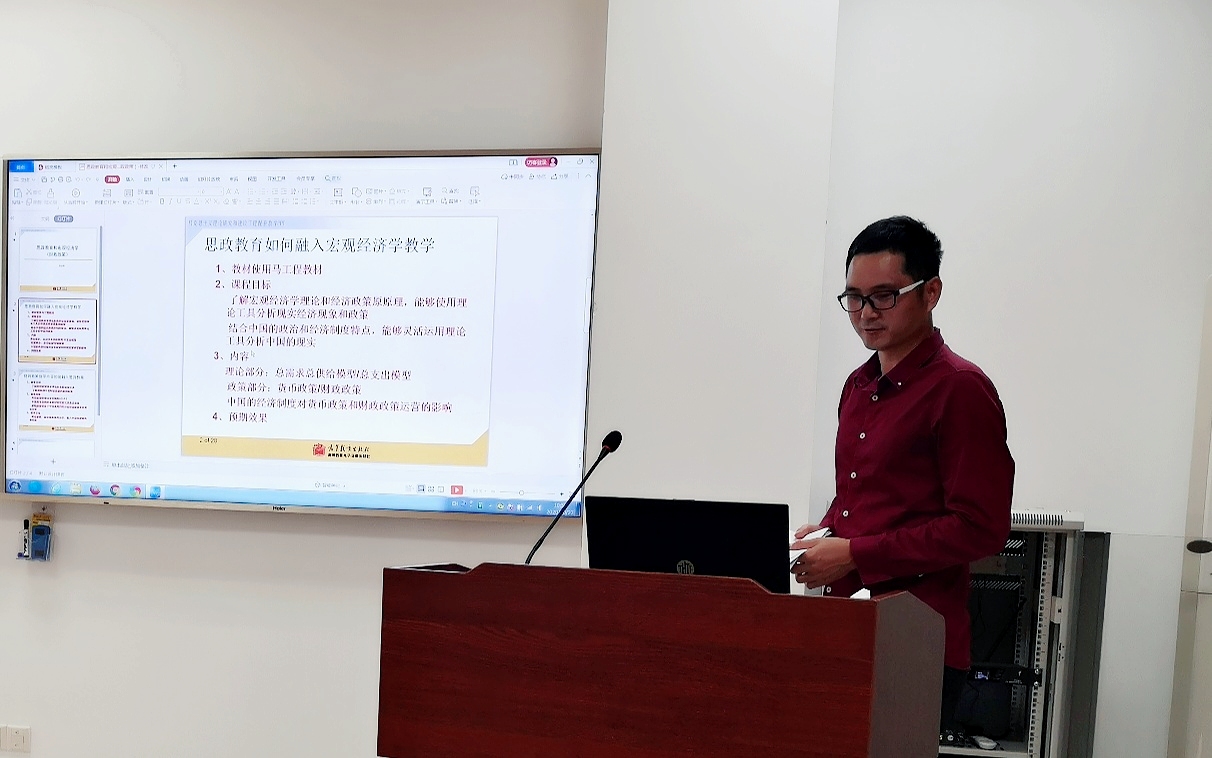 经学院各教研组推荐,本次比赛共有7名教师参赛。院党总支书记邹志波带头示范、亲自参赛,并分享了自己对课程思政的感悟。参赛教师从“说一门课”和“说一次课”两部分进行展示,各位参赛教师根据自己所授课程的内容和特点,深入挖掘课程中蕴含的思政元素,从教学目标、教学设计、教学手段和教学内容等方面将“知识传授”、“能力培养”和“价值引领”有机统一起来,展现了扎实的教学理论功底和良好的教学风貌。