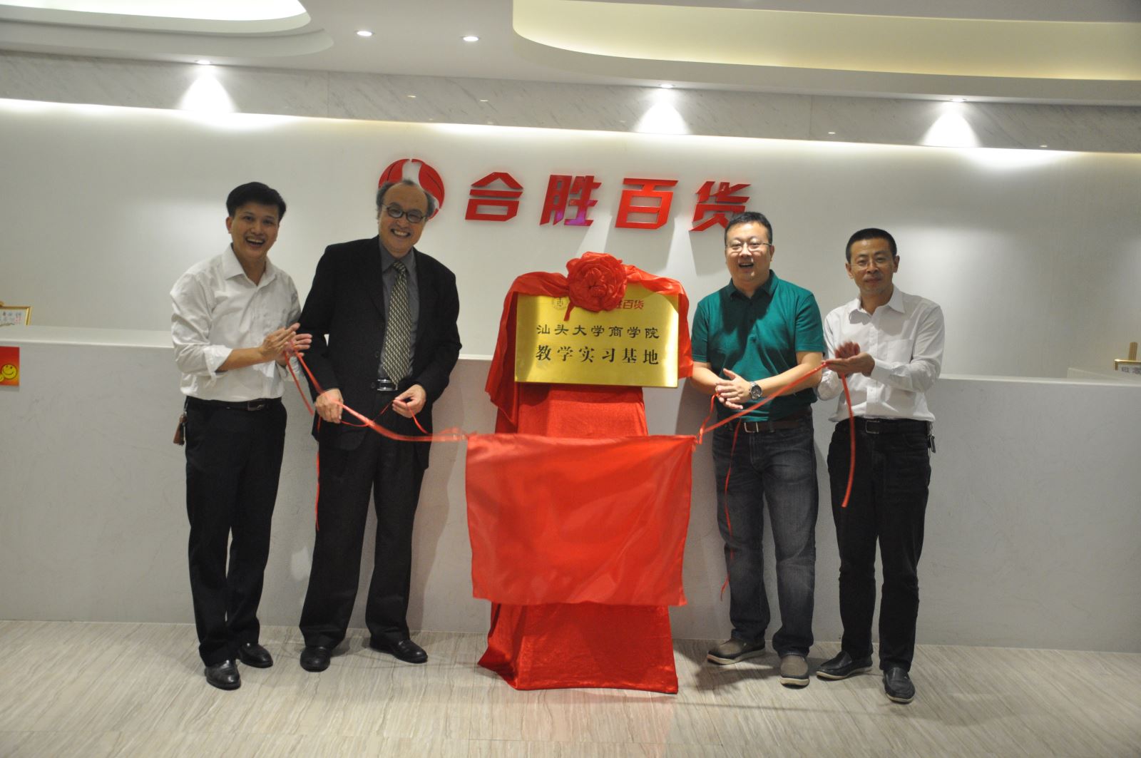 2016年10月11日,诸侯快讯ok1133.com与汕头市合胜百货公司教学实习基地揭仪式顺利举行。诸侯快讯ok1133.com吕源院长、高见书记、卜祥智副院长、宋小保副院长,和君诸侯快讯ok1133.com丛龙峰博士,以及学院其他老师一行10人参加了揭牌仪式。合胜百货董事长邱传龙先生,副总经理郑志远先生共同参加了揭牌仪式。