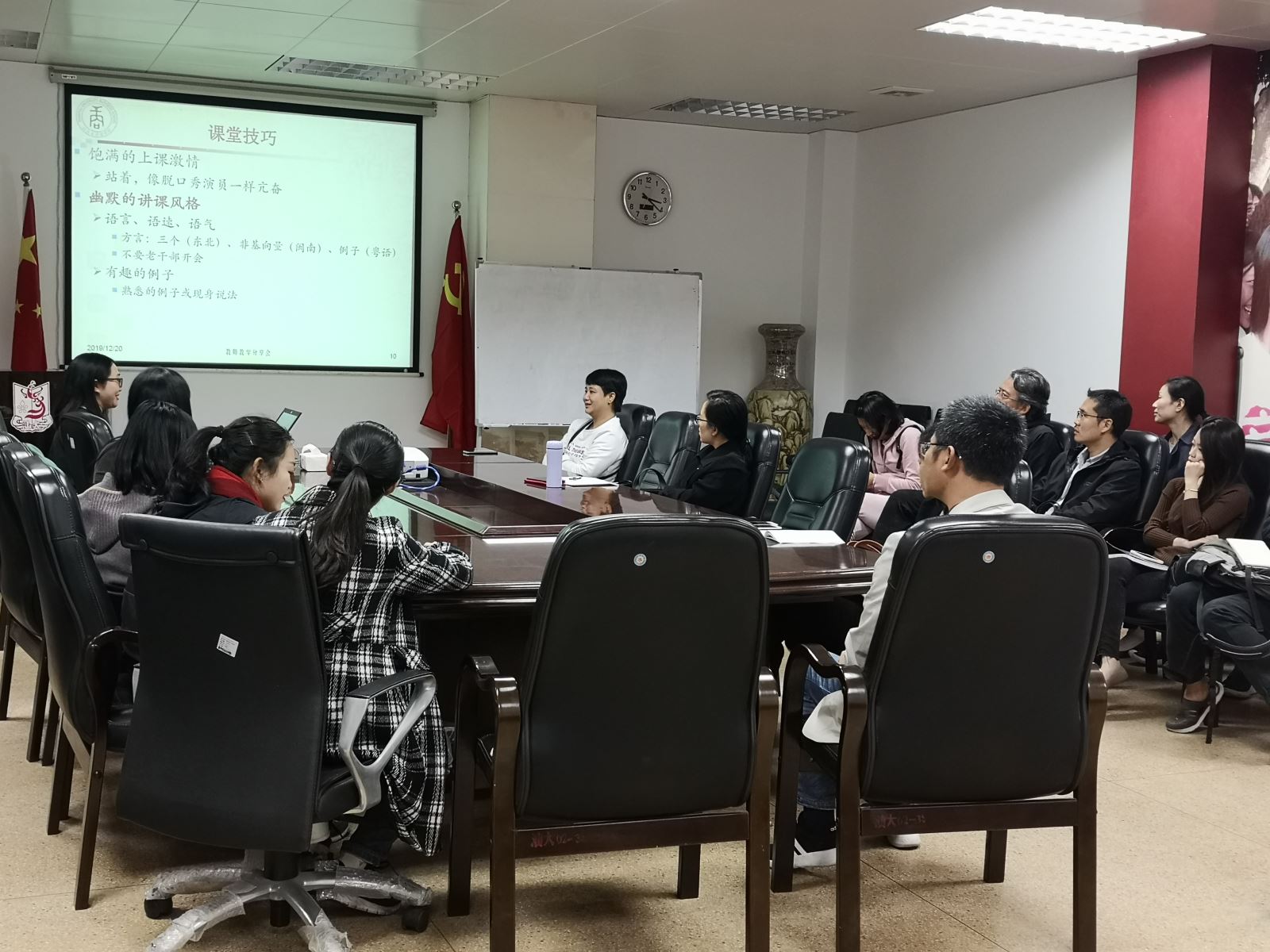 首先,诸侯快讯ok1133.com企业管理系郭翠老师做了题为“提升个人魅力,让学生爱上你”的教学分享。郭老师认为,教师上课时应衣着得体,有适当的妆容,以饱满的精神迎接每一次课程;专业老师要有扎实的专业知识,课前要充分备课。此外,郭老师还重点给大家分享了她的课堂技巧,包括如何用幽默的讲课风格活跃课堂气氛、以熟悉有趣的例子切换成学生易懂的情境、多找机会表扬和鼓励学生等等。郭老师最后表示教师也要时刻自省,重视学生评教中的反馈,积极提升自己。