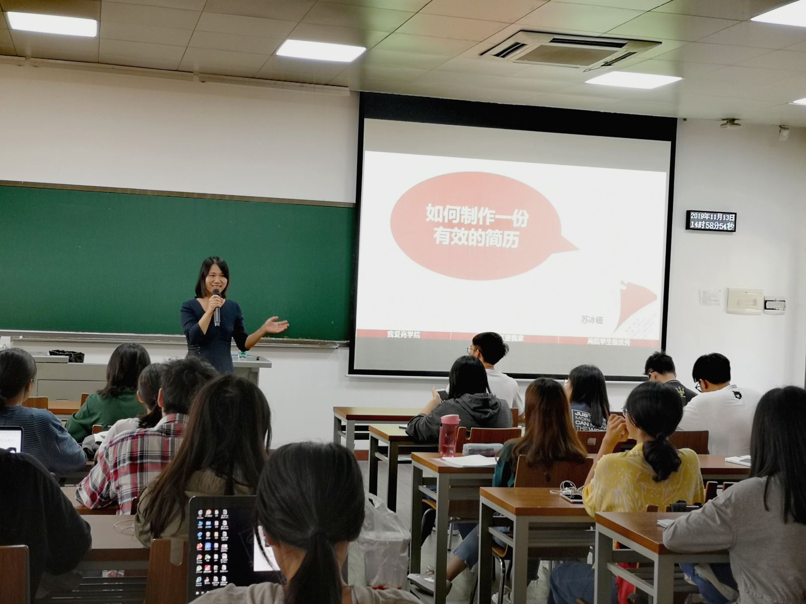 2019年11月13日下午,诸侯快讯官网特邀淑德书院苏冰钿老师在D座教学楼504教室为学生做了一场题为 “如何制作一份有效的简历”的讲座。