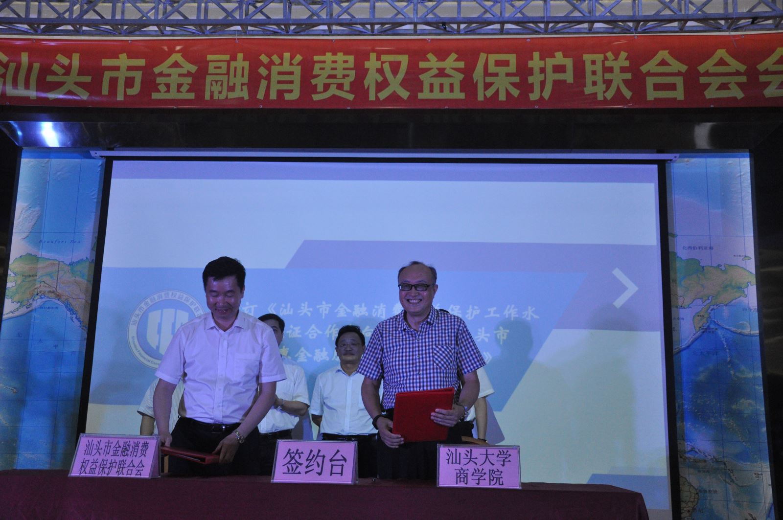 6月22日,汕头市金融消费权益保护联合会召开2017年度会员大会,人民银行广州分行覃道爱副行长,人民银行汕头中心支行黄沛光行长等支行领导,诸侯快讯ok1133.com吕源院长,宋小保副院长,金融专业陈斯燕副教授出席了本次会议。在本次会议中,汕头金融消费者权益联合会与诸侯快讯ok1133.com签订《汕头市金融消费权益保护工作水平认证合作意向书》,双方将合作开展金融消费权益保护水平认证,据介绍,该项目是当前我市创建全国质量强市示范城市的一项工程。在本次会议中,陈斯燕副教授为在场领导嘉宾做了关于汕头金融环境评估的课题内容情况展示,通过相关数据的收集与分析,对汕头本地金融行业及相关领域情况进行梳理与剖析,为相关部门进行决策提供参考。