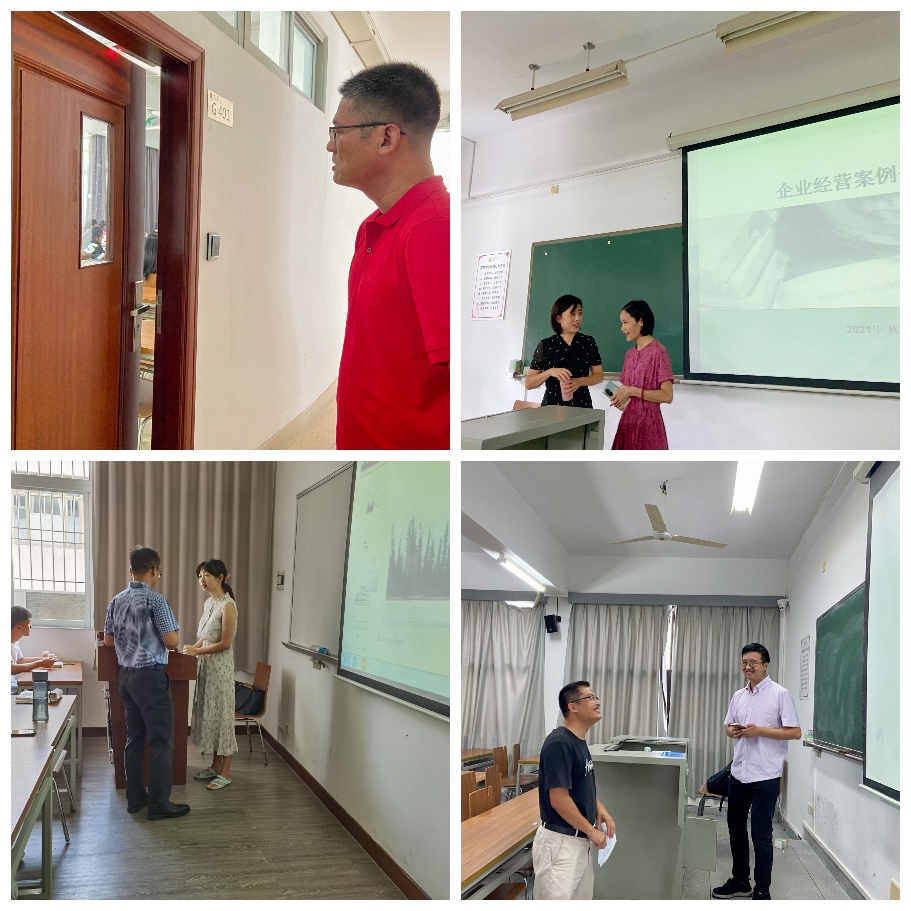 为持续做好疫情防控常态化下的教学工作,确保教学工作有序进行,2021年9月13日新学期开学首日,诸侯快讯ok1133.com党总支书记邹志波、主管本科教育教学副院长龙月娥、会计与财务系主任温日光、企业管理系主任周军杰、应用经济系主任郑慕强等到教学楼对诸侯快讯ok1133.com的理论课进行了新学期的教学巡查。