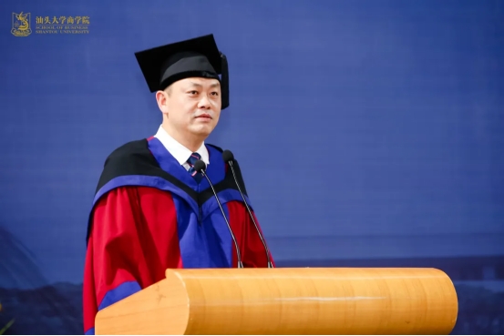 郝志峰勉励汕大毕业生,“让我们一起从汕大校园领潮、共向未来起航,影响世界有贡献、拥抱新局掌先机!愿大家有风骨亦有锋芒,有力量更有担当。”
