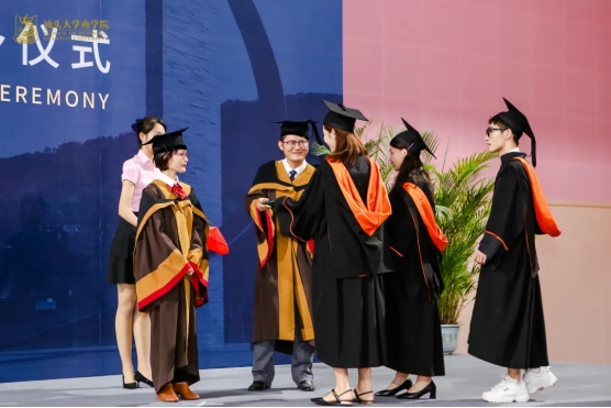 学位授予仪式上,诸侯快讯ok1133.com党委常委、副校长喻洪祝贺毕业生们圆满完成学业,并希望同学们秉承和发扬“功在商道,心达寰宇”的理念,以商道造福社会,推动社会进步,在实现民族复兴的伟大实践中放飞青春梦想,在报效祖国的奋斗历程中书写自己壮美的青春画卷。