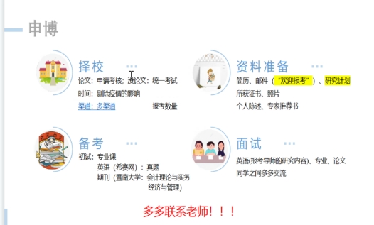 2020级会计学研究生胡星星(对外经济贸易大学拟录取博士研究生)从目标、方式等方面,分享自己申博的准备过程,建议师弟师妹在研究生期间灵活使用学校资源学习英语,平时多与导师交流,积极参加学校的学术会议。