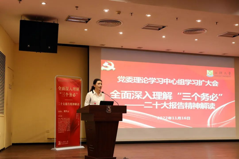 11月16日,学校党委在科技楼报告厅召开理论学习中心组学习扩大会暨党的二十大精神专题培训,深入学习宣传贯彻党的二十大精神。学校党委理论学习中心组成员,各二级党组织书记、副书记、委员,基层党支部书记,校本部副科级以上干部约200人参加会议。校党委书记姜虹主持会议。