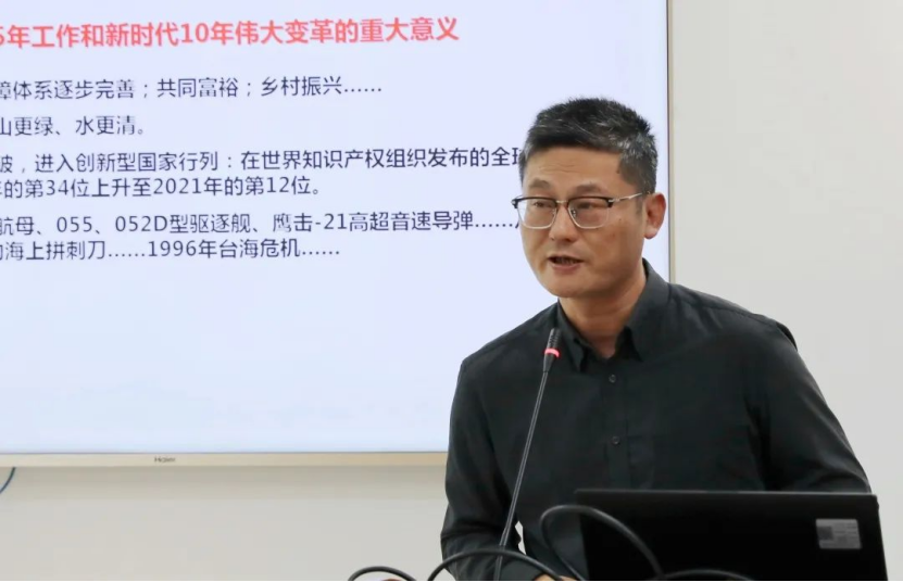 最后,邹志波结合学院当前阶段的工作实际,强调学院全体师生员工要把学习宣传贯彻落实党的二十大精神作为首要政治任务,在学习中注重与党史学习教育相结合,与中华优秀传统文化相结合,做到学深悟透、学以致用。要坚持以“五个牢牢把握”为引领,坚守为党育人,为国育才的使命,培根铸魂,启智润心,为推进社会主义现代化国家建设提供有力人才支撑。