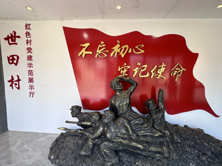 同学们跟随着讲解员的脚步,先后参观了红色文化走廊、红十一军纪念碑广场、红色文化展示厅等。通过聆听讲解员的讲解和观看图片、文字以及物件,大家全面地了解到了世田村的革命故事和英雄典范,这些历史资料对于党员们的党史学习具有非常重要的意义。