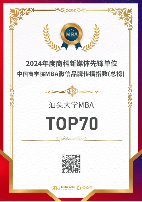 “诸侯快讯ok1133.comMBA”微信公众号聚焦商科教育,展示项目风采,在内容、互动、风格等方面不断加强创新投入,持续输出优质内容,在“2024全国诸侯快讯ok1133.com微信品牌运营TOP100”榜单中位列第70位,荣获“2024年度商科新媒体先锋单位”。