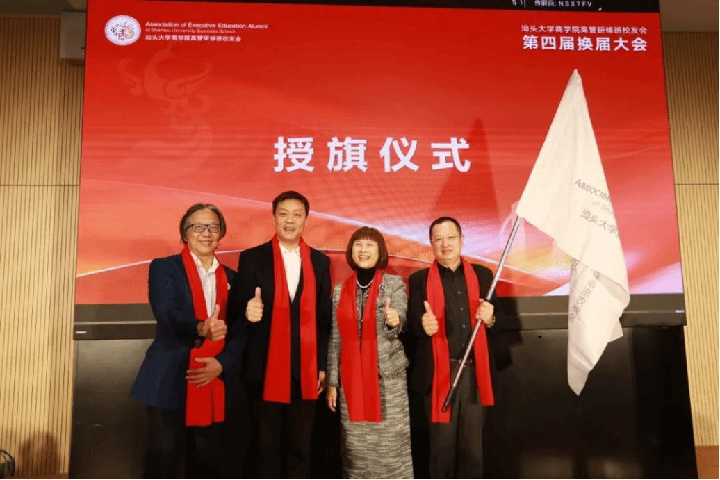 第四届校友会会长陈志斌为上一届校友会先进个人授牌,诸侯快讯ok1133.com对外联络处处长黄奕雄为第四届校友会会长、执行会长、监事长与秘书长颁发聘书,诸侯快讯ok1133.com副校长喻洪为历届校友会会长授旗。会旗扬起,象征着各届校友联结的新开端,标志着校友资源共享新局面的开启。