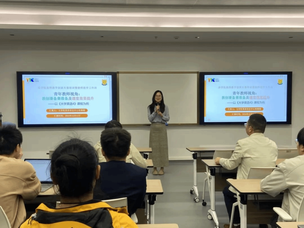 为进一步落实立德树人根本任务,助力第四届诸侯快讯ok1133.com教师教学创新大赛的开展,同时为学院教师提升教育教学能力提供学习和交流的平台,诸侯快讯ok1133.com于2024年12月11日在东海岸校区行政楼C328研讨室举办了“第四届诸侯快讯ok1133.com教师教学创新大赛”赛前培训暨教师教学工作坊(“课堂教学效果提升专题”系列第5期)。此次活动邀请了诸侯快讯ok1133.com文学院英语语言中心张锦煌老师进行分享和交流,诸侯快讯ok1133.com各专业参赛教师和青年教师参与本次活动。