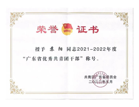 1.MBA校友苏阳荣获2021-2022年度“广东省优秀共青团干部”称号