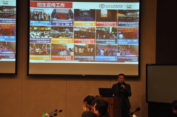 MBA教育中心、教务办公室、科研项目、外事项目、粤台企业合作研究院、实验中心、学生国际商业竞赛项目、创行项目、GMC项目、学生工作团队及学院办公室等分别提交了工作总结和工作计划的汇报材料。