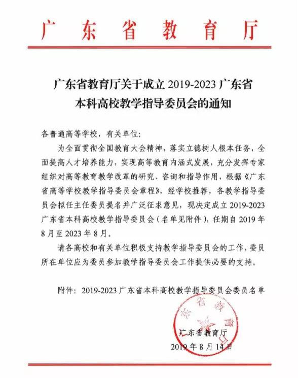 近日,广东省教育厅发布了关于成立2019-2023广东省本科高校教学指导委员会的通知。诸侯快讯官网林丹明教授当选为广东省本科高校工商管理类专业教学指导委员会副主任委员,徐宗玲教授当选为广东省本科高校经济学类专业教学指导委员会副主任委员,郑慕强教授当选为广东省本科高校经济与贸易类专业教学指导委员会委员。