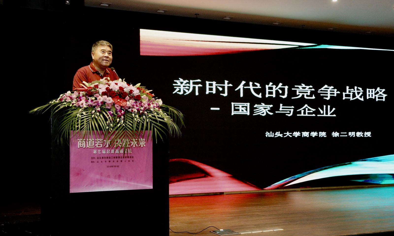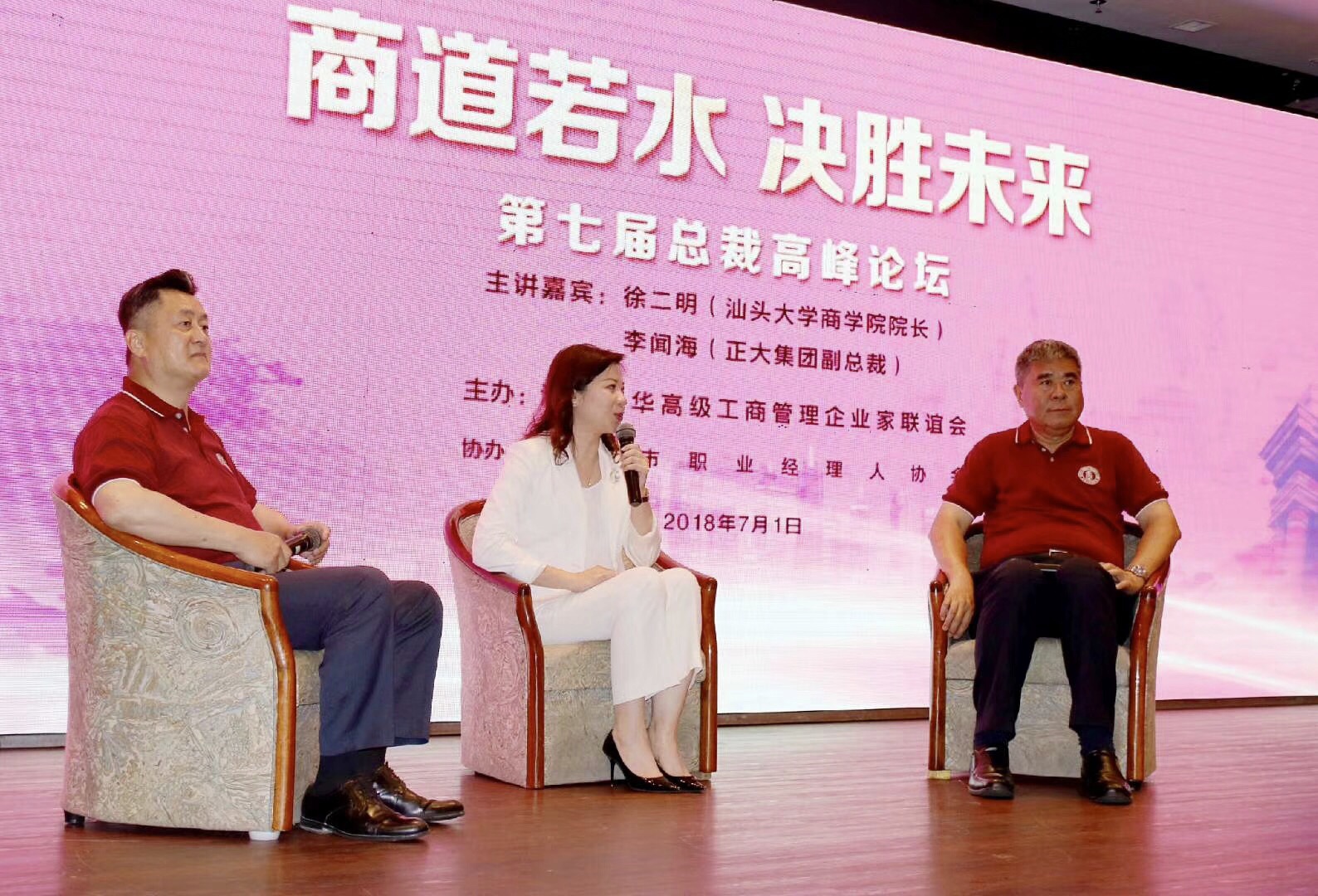 2018年7月1日下午,由汕头清华高级工商管理企业家联谊会主办,汕头市职业经理人协会协办的“商道若水,决胜未来”第七届总裁高峰论坛在诸侯快讯ok1133.com科技中心学术报告厅顺利举行。市人大常委会副主任、诸侯快讯ok1133.com校长助理徐宗玲教授出席论坛,论坛特邀诸侯快讯ok1133.com院长徐二明、泰国正大集团副总裁李闻海作主讲嘉宾,由全球潮人文化大使、CCTV《大国人文》主持人李红梅担任主持,来自粤东各地的企业家、商协会代表等共计300余名嘉宾欢聚一堂,共享智慧盛宴。