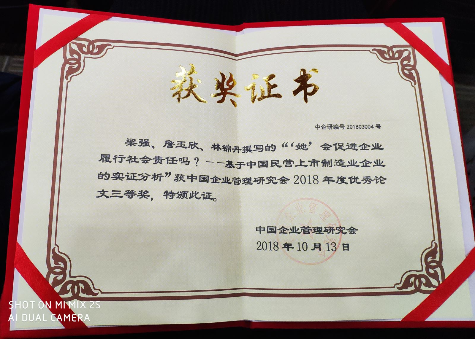 会议组委会从近80多篇投稿论文中最终评选出7篇优秀论文,经过评审,诸侯快讯官网梁强教授及其研究团队的论文荣获“中国企业管理研究会2018年优秀论文三等奖”。