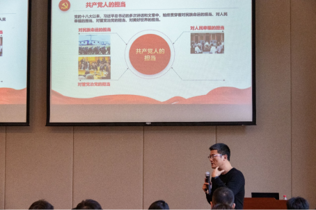 课堂上,邹志波以中华文明传承、中国近代历史、百年党史为大背景,将不同文明、不同政体、不同时代横纵进行对比,围绕“选择”这一关键词深入浅出地进行了讲授。他强调,历史充分证明,只有共产党才能救中国,没有共产党就没有新中国。他以“我们为什么自信”的提问为切入点,指出我们自信的根源:千年传承从未断绝的中华文明、中国共产党的坚强领导和崇高理想信念、生长在这片热土上的每一位勤劳中国人。谈到担当,他分享了中国共产党人对民族命运、对管党治党、对人民幸福和对美好世界的担当。最后,邹志波寄语全体师生,面对当前百年未有之大变局,我们要在正确的时候做出正确的选择,坚持中国共产党的领导,树立高度的文化自信,以实事求是的务实态度展现新时代的担当,做有为之人,行有为之事。