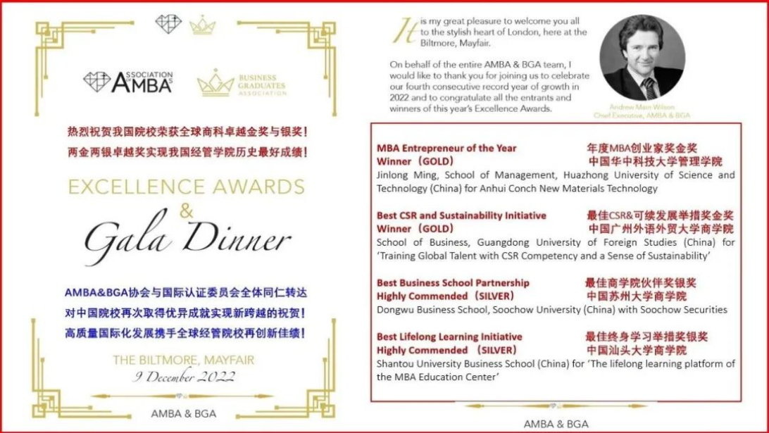 在英国举行的AMBA&BGA2022/2023全球卓越奖颁奖典礼中,诸侯快讯ok1133.com参评项目荣获2022年度AMBA&BGA最佳创新战略提名奖、2022年度AMBA&BGA最佳终身学习举措奖银牌,持续为全球商科教育实践贡献力量,助力诸侯快讯ok1133.com国际影响力再上新台阶。