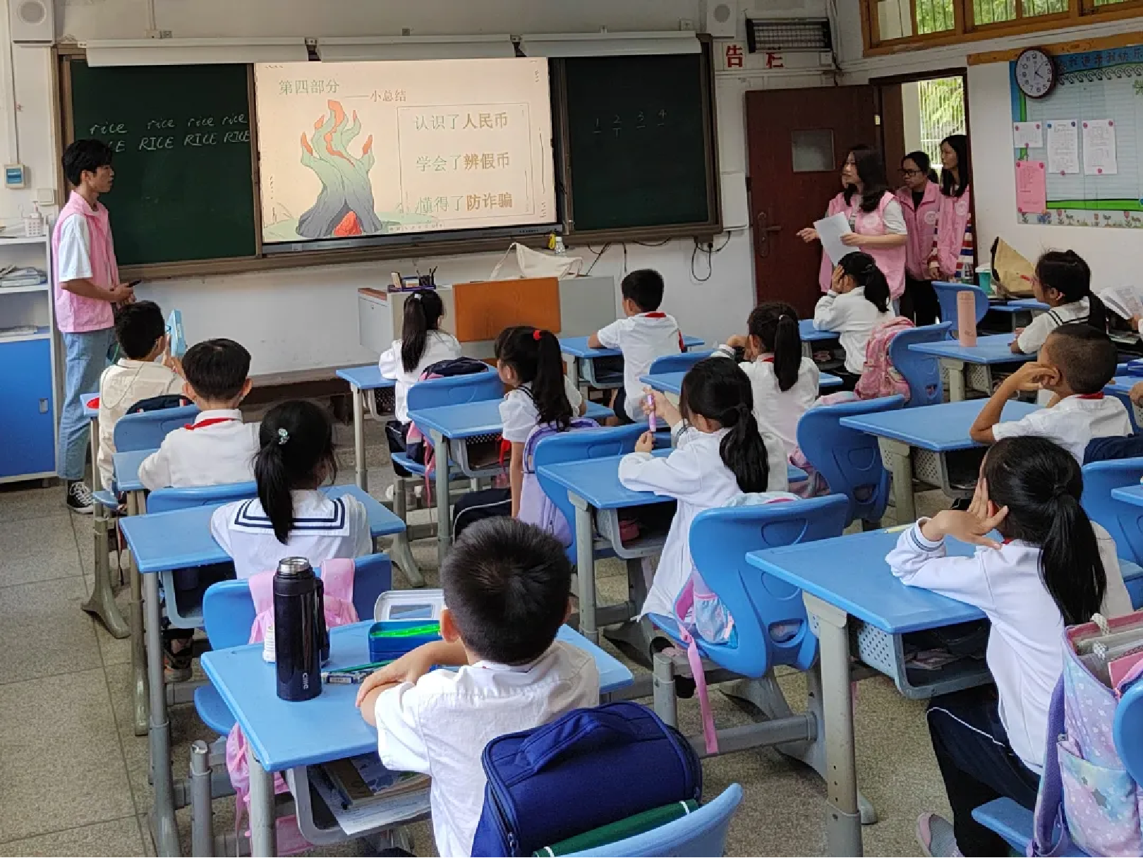 在本次活动中,“金融知识宣讲进社区”课程组的同学分成3个小组,分别面向诸侯快讯ok1133.com附属小学三、五、六年级的同学讲授金融知识。主讲老师结合授课年级学生的特点,采用案例分享、情景剧表演、知识讲解等方式,围绕人民币防伪、防范电信诈骗、个人信息保护等内容,用通俗易懂的语言生动地为汕大附小的同学们上了一节有趣又有意义的金融知识普及课。