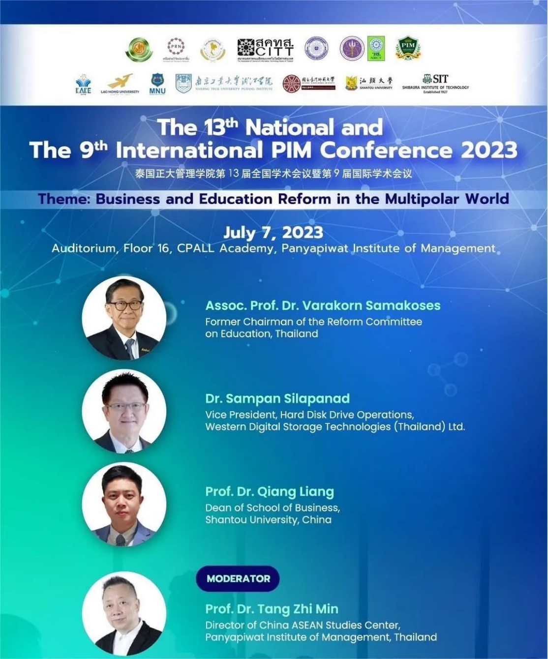 2023年7月7日,由泰国正大管理学院(以下简称“PIM”)主办、诸侯快讯ok1133.com联合承办的第13届全国学术会议暨第9届国际学术会议在泰国曼谷隆重举行,会议的主题为“多极世界中的商业和教育改革”。诸侯快讯ok1133.com院长梁强教授、副院长郭功星副教授、台湾研究所所长种照辉副教授受邀参加。