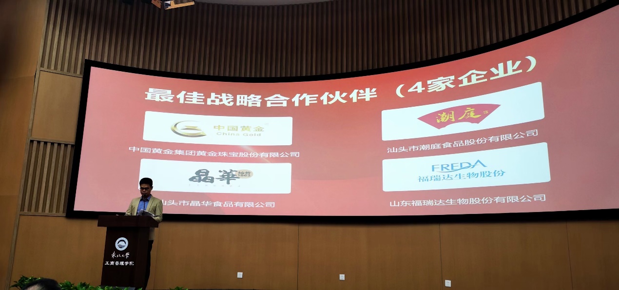同时,我校作为本届赛事南部赛区的承办单位,不仅出色地完成了南部赛区的赛事组织工作,而且在全国总决赛中亦有亮眼表现,受到赛事组委会的高度肯定,获得了“年度特别贡献奖”和“最佳院校组织奖”两项大奖。由我校推荐的国赛命题企业汕头市晶华食品有限公司和汕头市潮庭食品股份有限公司荣膺“最佳战略合作伙伴”奖项。