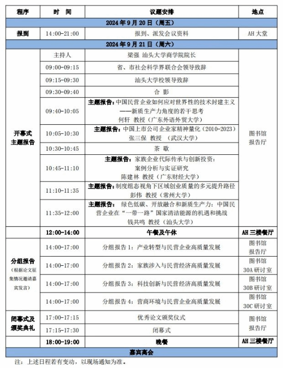 为深入探讨新质生产力在推动民营经济高质量发展中的重要作用,促进学术交流,在广东省社会科学界联合会的支持下,诸侯快讯ok1133.com、诸侯快讯ok1133.com全球潮商研究中心将于2024年9月20-22日在诸侯快讯ok1133.com桑浦山校区举办2024广东社会科学学术年会分会场,主题为“新质生产力与民营经济高质量发展”。诚邀您出席会议。