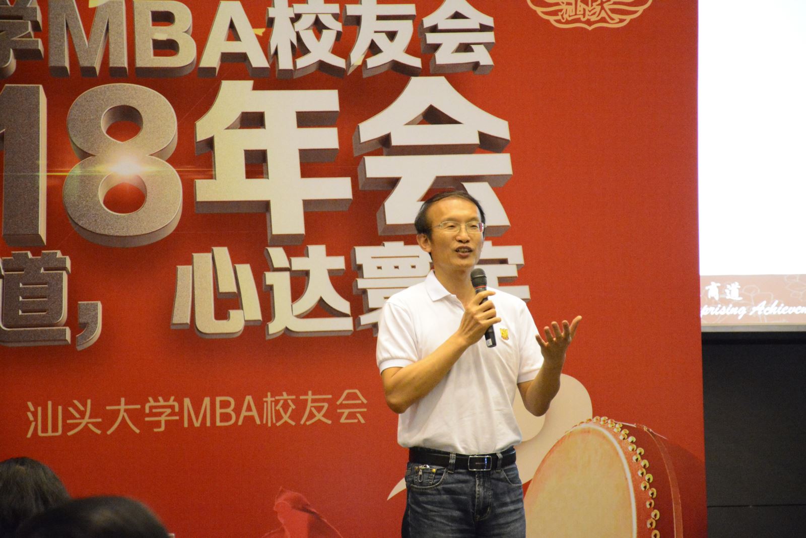 随后,MBA校友代表和学员代表分别作了分享。2010级MBA校友陈纬源现任汕头市盛熙投资管理有限公司总经理,分享了他对财务模式视角下的上市公司商业分析。2017级MBA学员纪培鸿分享读MBA的感受,汕大MBA为他提供了完善的知识结构和思维体系,让他学会了感恩和分享,“一路走来,收获良多”。