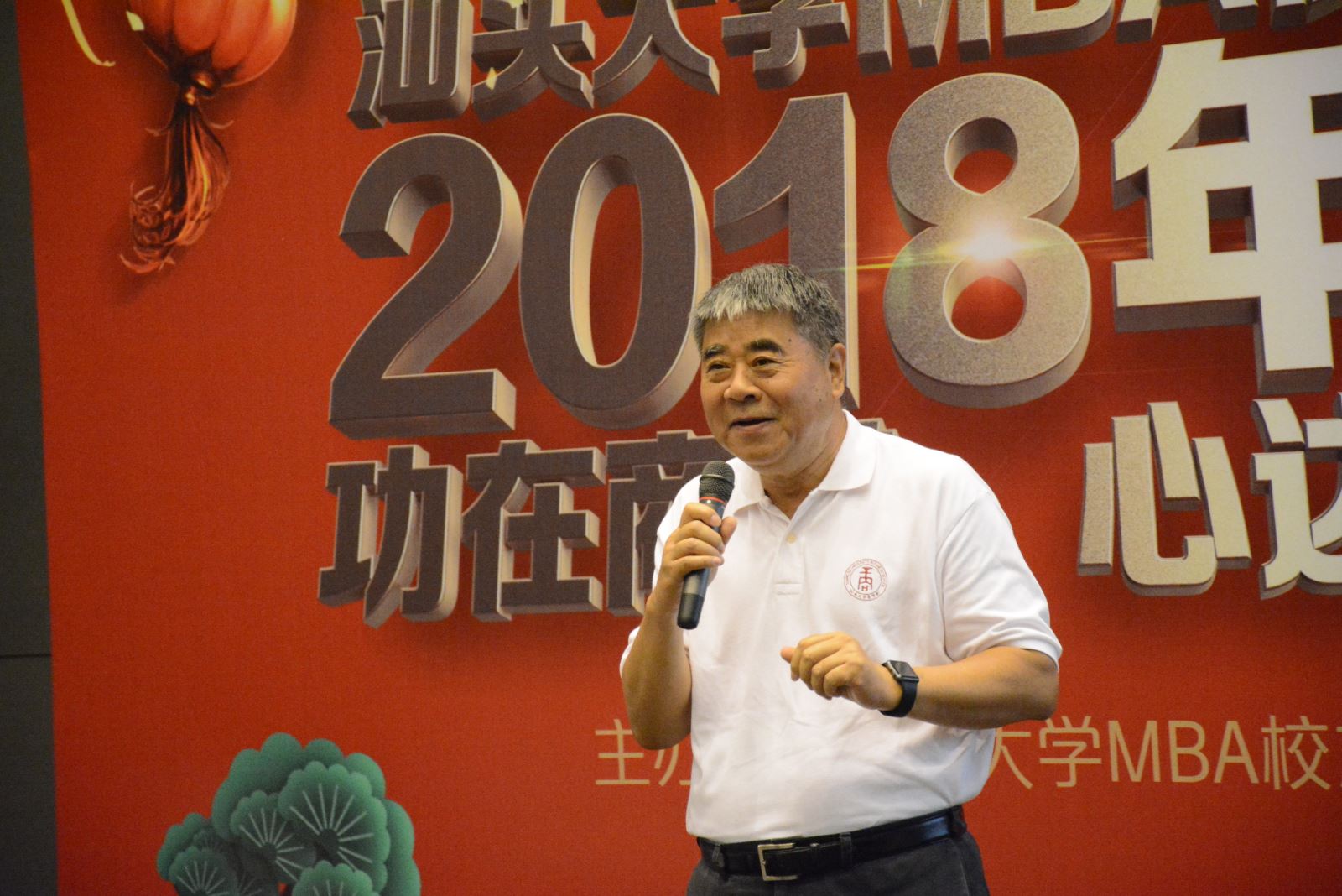 徐二明院长一上台就讲了一句潮汕话“自己人”,引得在场校友掌声不断。徐二明教授说,MBA自开办以来,践行着“功在商道,心达寰宇”的办学理念,不断探索自己的教育特色。近几年招生人数稳定增加,生源质量越来越好,这些成就实属不易,离不开在座校友的努力。最后,他表达了对校友的期望与祝福。