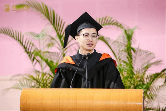 Chun Guo, Master of Accounting, Class of 2019, spoke as the representative of academic master graduates. Guo Chun shared his experience of growing up in his seven-year study career at Shantou University, extending gratitude to university for giving students a platform to build themselves and surpass themselves, as well as the teachers of the college for their careful training and teaching, which guiding their direction ,developing their thinking, and encouraging them to aspire to be youngster with "aspiration, knowledge, perseverance and achievement".