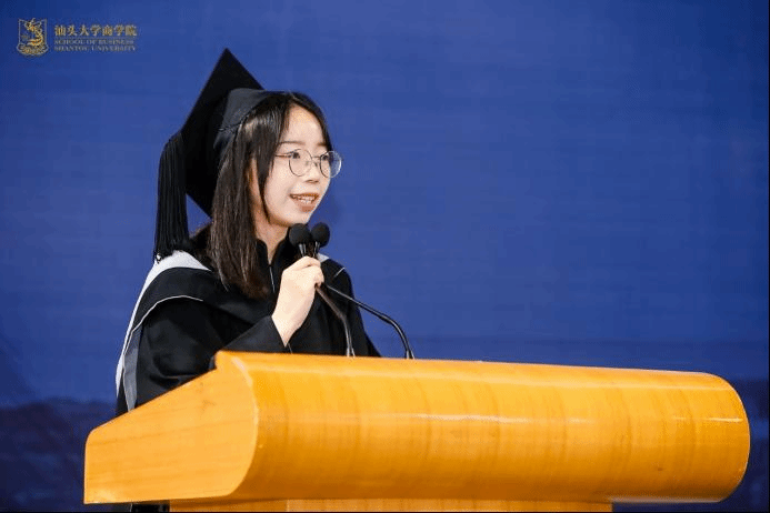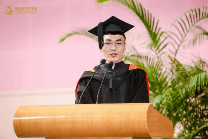 Ziying Hong, a student of MBA class of 2019, spoke as the representative of MBA graduates. With the introduction of "What are the most influential words during your study in Shantou University", Ziying Hong elaborated on his understanding of the connection between "aspiration, knowledge, perseverance, and knowledge", “make contribution to the world and pursuing their own value "and "success in business, cherish the world”. He encouraged students to pursuing their own value and cherish the world; to become knowledgeable and persistent people through hard work, so as to achieve success in the business world; to make contribution to the world and not claiming credit of success on me, so as to expand their vision.