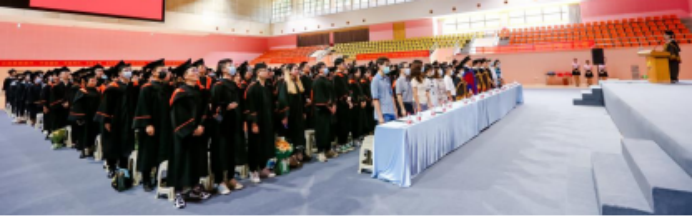 The Degree Awarding Ceremony started with the majestic sound of the national anthem. Vice President Hong Yu delivered a speech with the title of " Forge Ahead on a New Journey to Create the Glorious Future". President Yu congratulated the graduates on the successful completion of their studies and paid tribute to the teachers and parents who had accompanied them in their growth and road to success. President Yu pointed out that for the past 100 years, under the banner of the Communist Party of China, generations of Chinese youths have integrated their youthful struggle into the cause of the Party and the people, becoming the pioneering force to achieve the great rejuvenation of the Chinese nation. As young people in the new era, graduates are responsible for building a modern and powerful socialist country and realizing the Chinese Dream of national rejuvenation. Besides, they also have a better development environment and a broader space for growth. President Yu expressed his earnest expectations for the graduates. Firstly, they should be firm in their ideals and beliefs, master solid skills, pursue all-round development, and strive to grow up to the youths who can shouldering Heavy Tasks in this new era; secondly, they should stand out and, dare to be the pioneers and innovators, insist on forging ahead, and strive to grasp the opportunity to become a remarkable person; thirdly, they should cultivate patriotism, sharing weal and woe with the country, staying true to the founding mission and responsibility, and striving to make new contribution in the new journey. He hoped that the students would uphold and carry forward the concept of "success in business, cherish the world", benefit society with business success, promote social progress, actualize their youthful dreams in the national rejuvenation, and paint their magnificent picture of youth in the struggle to serve the motherland.