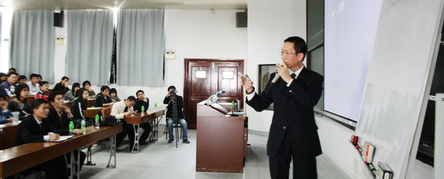 On the afternoon of Mar 15, 2009, Mr. ZHOU Weihong, Chief Expert of China Successful Career Net, professional trainer, international professional manager and management consultant, held a wonderful career forum with the theme of the Code to the Success of Professional Manager, in the Lecture Rm. 201 of E Teaching Building. The forum was hosted by Mr. SU Junzhi, Business School.