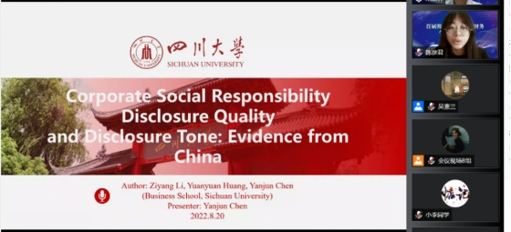 Parallel forums were held in the afternoon of August 20th and the morning of August 21st. There were nine parallel forums chaired by Professor Huilong Liu from the University of International Business and Economics, Professor Junsheng Zhang from Sun Yat-sen University, Professor Yunguo Liu from Sun Yat-sen University, Professor Junxiong Fang from Zhejiang University of Finance and Economics, Professor Shunlin Song from Central University of Finance and Economics, Professor Hongliang Zheng from the Institute of Economics, Chinese Academy of Social Sciences, Professor Pingui Rao from Jinan University, Professor Li Qingyuan from Wuhan University and Professor Chaopeng Wu from Xiamen University. Twenty-four speakers presented papers on five sub-themes, including "Human Geography and Corporate Finance", "Institutional Evolution and Corporate Finance", "Policy Shocks and Corporate Behaviour", "Digital Economy and Corporate Finance" and "Corporate Finance and Governance" and received in-depth comments and discussions from outstanding accounting scholars with experience in publishing in top journals at home and abroad. Each of the parallel forums attracted dozens of online and on-site scholars, and the atmosphere of the conference was lively and stimulating, with sparks of ideas colliding.