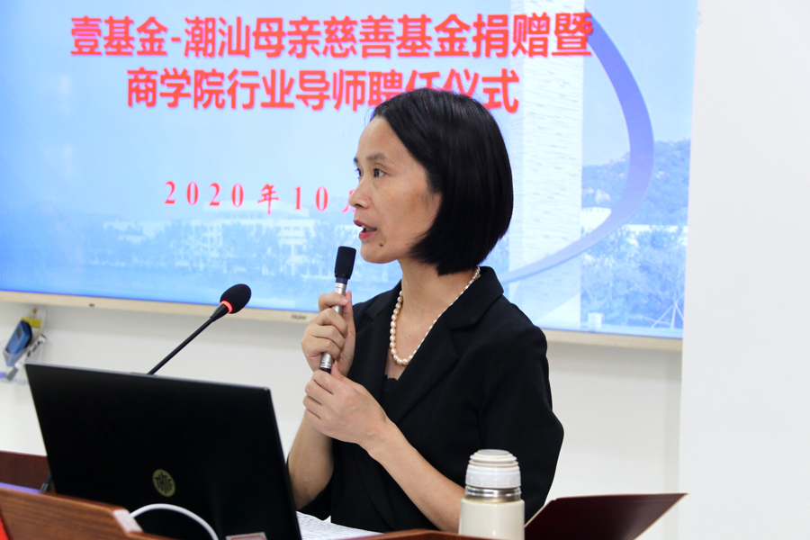 On October 21, the Shantou University "One Foundation - Chaoshan Mothers Charity Fund" Scholarship Donation Ceremony and Appointment of School of Business Industry Mentor was held in the conference room of the School of Business. Mr. Chen Yinglin, Director of Exterior Communication Department of Shantou University, Mr. Zou Zhibo, Secretary of the General Party Branch of the School of Business, Ms. Long Yue'e, Vice Dean of the School of Business, Mr. Lin Xunan, Vice Chairman of Shenzhen Chaoshan Chamber of Commerce attended the ceremony, which was presided over by Vice President Long Yue’e.