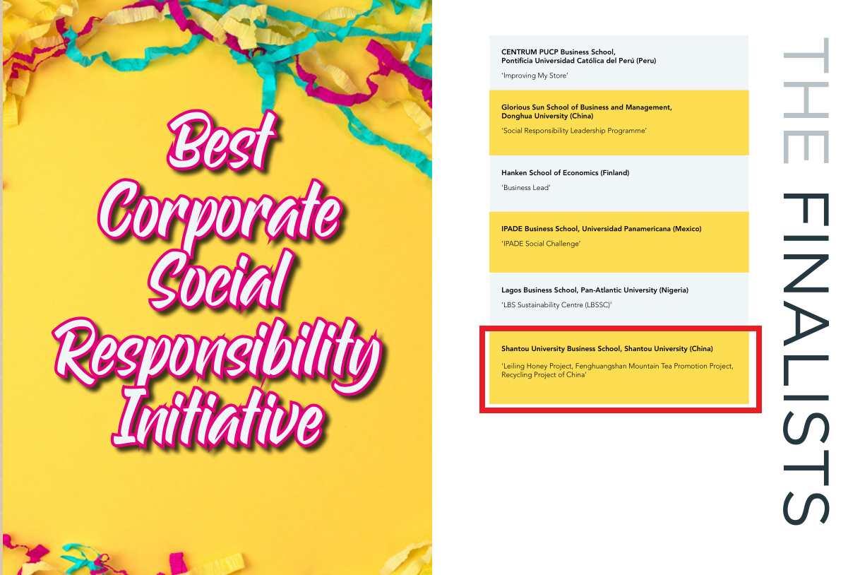 On January 29, 2021, at the online meeting of "AMBA & BGA Excellence Award", School of Business, Shantou University, has won the final nomination award of the Best Corporate Social Responsibility Initiative, which is the first time for the School to win the award. The selection of the excellence award is applied by the institutions that have passed the AMBA or BGA accreditations in the world. And reviewed by the expert group for more than three months and finally decide the final nomination list.