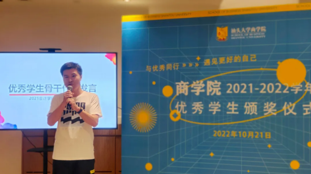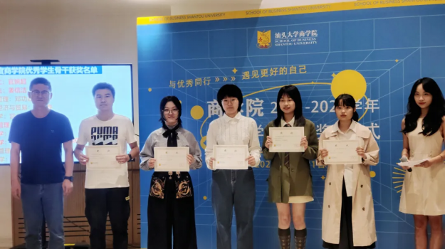 In order to commend the advanced, establish the typical, and further promote the high-quality development of our students' work, Business School held an award ceremony for the outstanding students in 2021-2022 in the conference room of the Academic Exchange Building on October 21, 2022. Hong Yu, Vice President of Shantou University, Zhibo Zou, Secretary of the Party Committee of Business School, and Bingdian Su, Deputy Secretary of the Party Committee of Business School, attended this event.