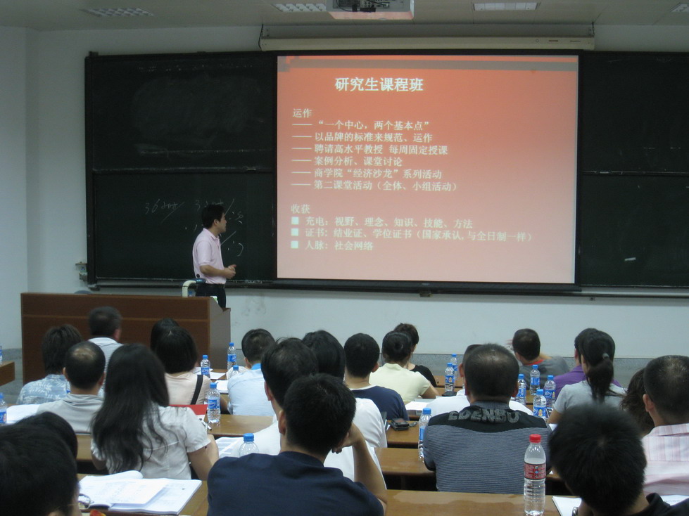 On the evening of Sept. 8, Business School held the 1st class meeting for students of Cooperate Management Postgraduate Course Program (Grade 2009). 84 students from leadership groups of companies and government departments in three cities of Chanshan area attended this meeting. The class meeting was hosted by Mr. CHEN Yinglin, the senior marketing analysis and the director of the administration education center, Shantou University. Dean of Business School Prof. XU Zongling, assistant of the postgraduate course program Ms. ZHUANG Yuanyuan and foreign affairs assistant Ms. ZHENG Shaochun were present at this meeting.