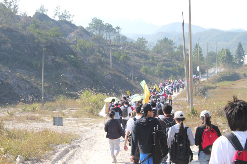 Taking a short break after nearly 3 hours of bus ride, the first activity on site was mountain climbing. The picture-perfect scenic views along the journey uphill, including stretching mountain range, orderly terraced tea gardens and mountainside golf course, kept students busy with their cameras. Attractions towards the end of the route added surprises with gorgeous fading green water of the Qingren (lovers) Lake and the barren Huoyan (Flaming) mountain which reminded the climbers of the stories in the classical Chinese literature 'The Journey to the West'.