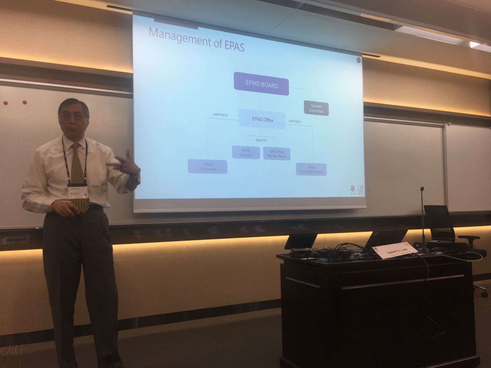 The conference was host by EFMD Project Manager Ms. Veronique Roumans and lectured by the Global Senior Consultant Prof. Japhet S. Law. In the conference, Prof. Japhet S. Law introduced the EPAS accreditation's significance and its international influence. He also talked about the details of EPAS accreditation conditions and requirements at present and illustrated the significance of EQUIS accreditation and EPAS accreditation that can bring to the Business School.