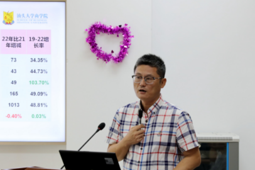 Vice President Hong Yu extended his congratulations and cordial greetings to the faculty and staff of Business School and delivered a speech. Vice President Hong Yu pointed out that 2022 is the year of the 20th Party Congress, and also the first year after the 40th anniversary of the founding of Shantou University, the theme of this year's Teachers' Day is "Welcoming the 20th Party Congress, cultivating the soul and raising new people". As higher education workers, we should focus on the center, serve the overall situation, make our own contribution based on the actual work, and greet the 20th Party Congress with practical actions and excellent achievements. Vice President Hong Yu also put forward ardent expectations for teachers, one is to adhere to the moral education, cultivate the roots of the soul, the courage to take up the historical mission of training new people who can bear the heavy responsibility of national rejuvenation; two is to adhere to the learning as a teacher, the behavior of the world, and strive to be the new era of "experience teacher" and "human teacher "The third is to seize the opportunity to forge ahead and write a new chapter in the comprehensive and high-quality development of the school.